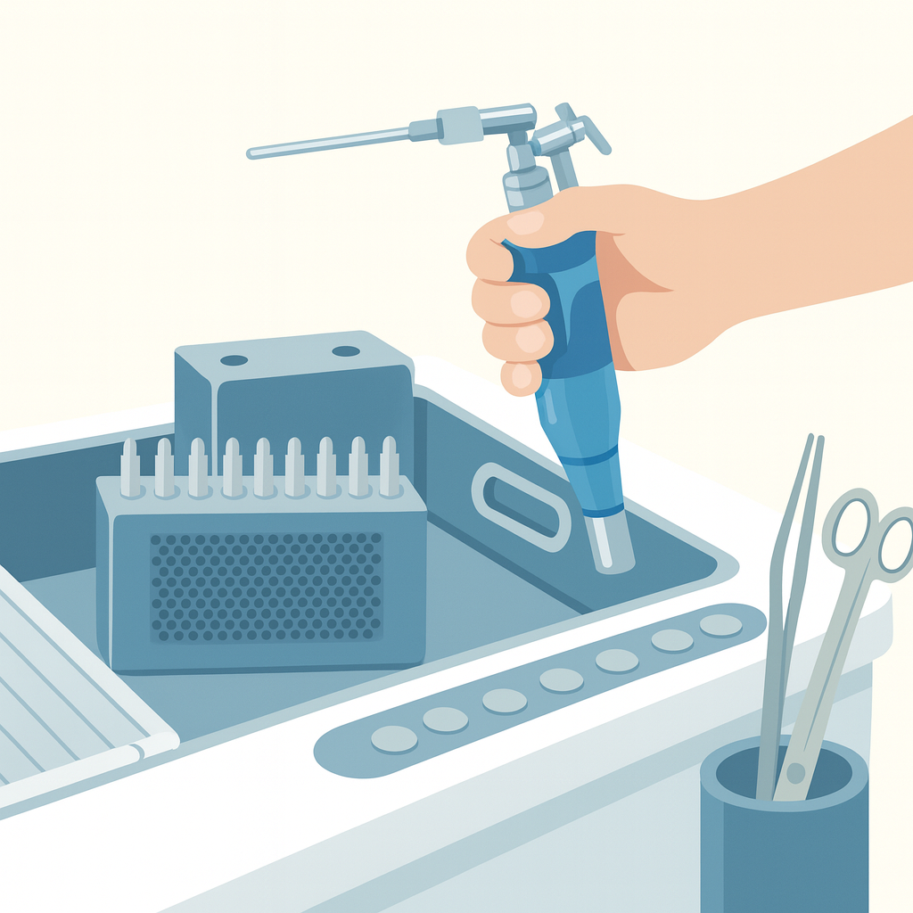 適切な手順で洗浄し、器械に付着した微生物を確実に除去します。