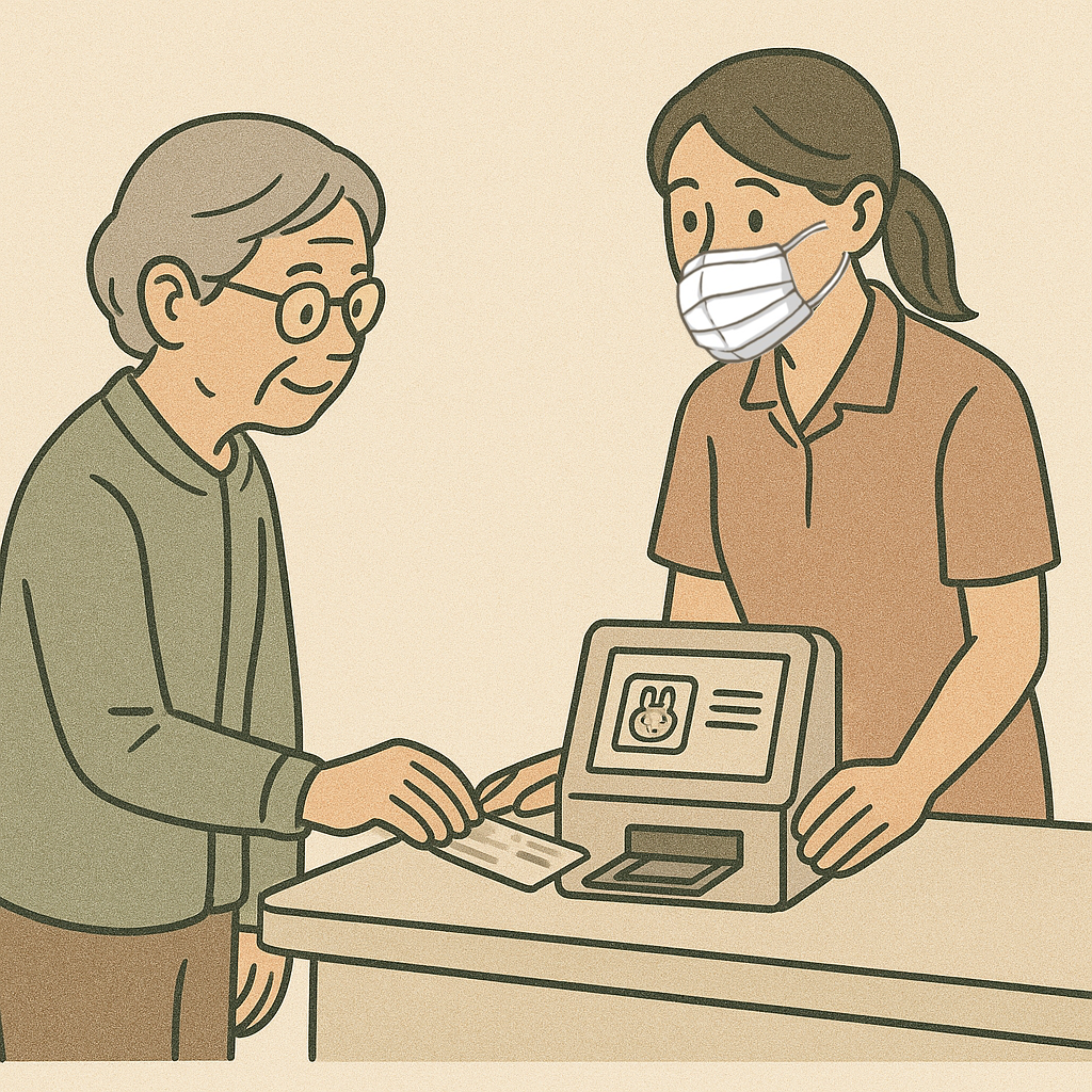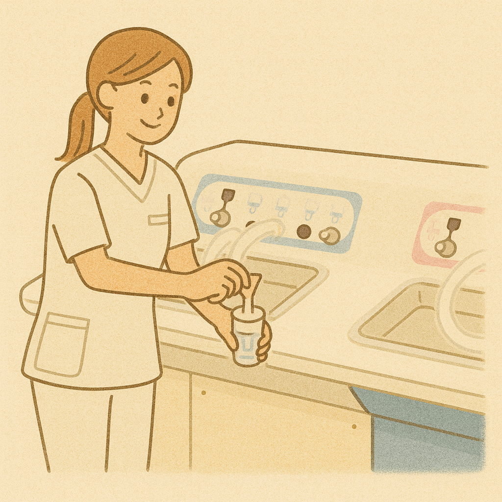 患者さんがすでに並んでいることもあります。 診療前後に全員で手分けして清掃します。感染対策の基本です。 診療の合間や診療終了後に、必要な備品をチェック・補充します。 診療に使う器具や備品を整えます。 診察器具の準備 薬液の補充 機械のセッティング 診療開始前に短い申し送りを行います。 朝の打ち合わせ 患者さんの最初の接点。明るい対応が大切です。 書類の受渡し 患者さんのカルテ登録・修正 書類のスキャンや印刷 電話の対応 日計の締め作業 セルフレジや保険証読み取り機の操作をサポートしたり、待合室でのちょっとしたトラブルに対応します。 セルフレジの操作サポート マイナ保険証の読み取りサポート セルフレジの返金・釣り銭の補充 受付サブを兼任 その他のトラブルへの対応 医師の横でお子様の体勢の保持や、器具の医師への受け渡しなどを行います。(実際は手袋をしています) お子様の頭の位置固定 診察器具の受渡し 簡単な検査 頻用する器械の清拭 検査の準備 診療に使用した器械は、使用後に薬液につけた後、洗浄を行います。 器械の洗浄 洗浄機械の利用 器械の収納 洗濯 シフトの調整 棚おろし 新しい方への指導 おつかれさまでした!